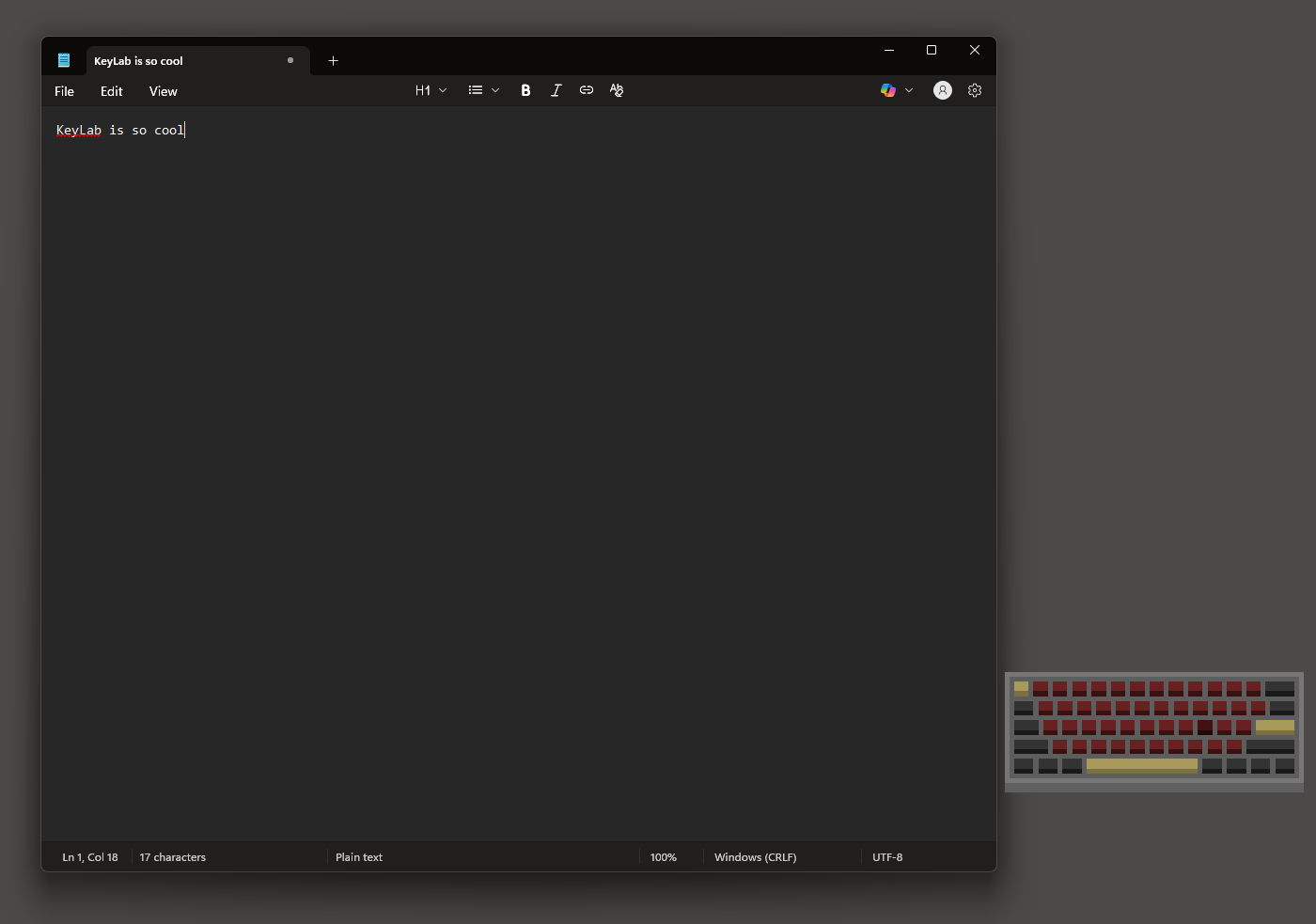 KeyLab is a simple tool which allows you to visualize keystrokes and give your typing a custom sound. Use it for streaming, ASMR, or just for fun.
